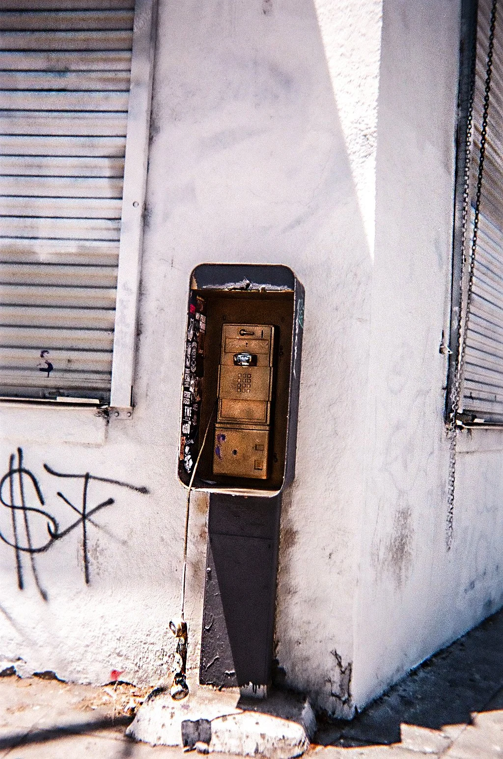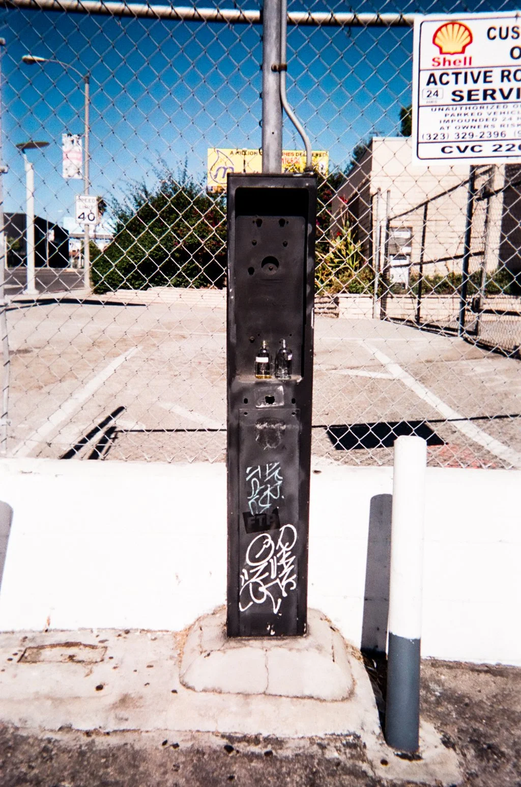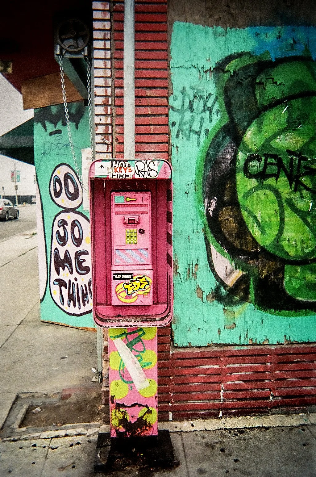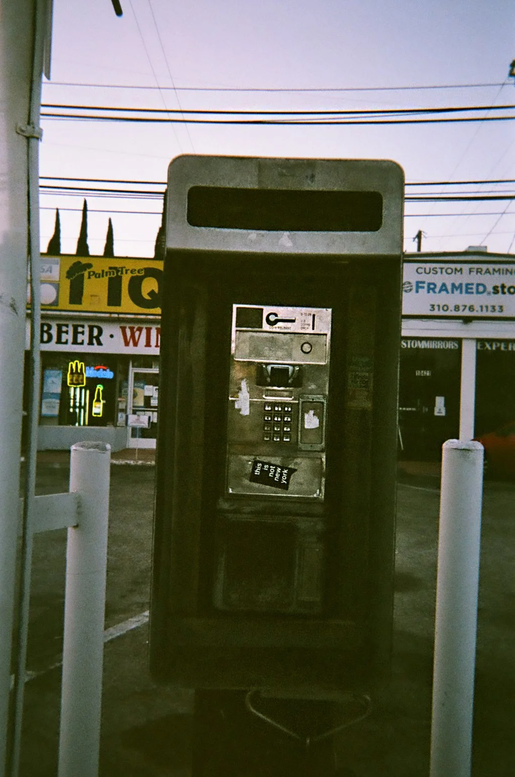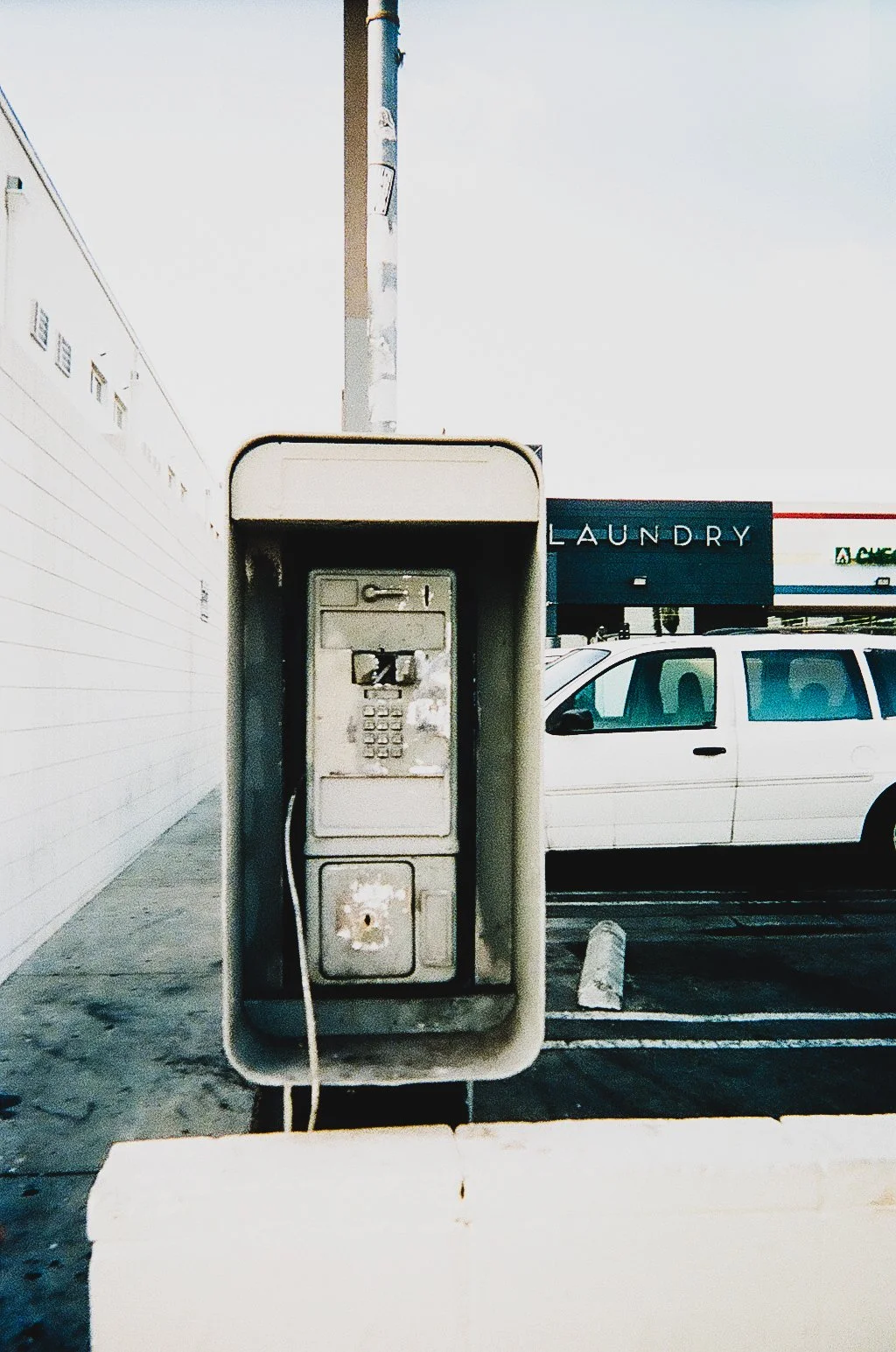 Mobile phones control our primary method of communication. And with the once needed payphone invention, which first appeared in 1898, gradually fading to memory, this series is a glimpse back in time to appreciate the payphone’s brilliance and usefulness in their most recent last looks. Many of these phones are decayed and withering from neglect. The once coin-operated “pre-pay” mode of communication is a genius found in common necessity and will soon be forgotten to time, as miscreants continuously abuse them. Eventually the decaying phones of Los Angeles will disappear entirely, as they are the subject of this on-going study. Each photograph is an environmental portrait. And even though the phones are out of commission, they remain — a presence and absence at the same time.