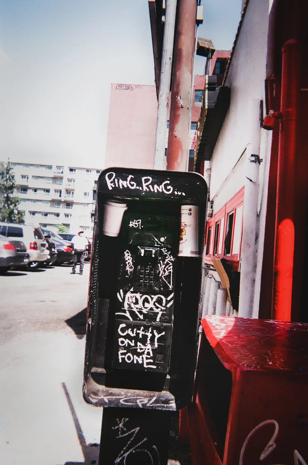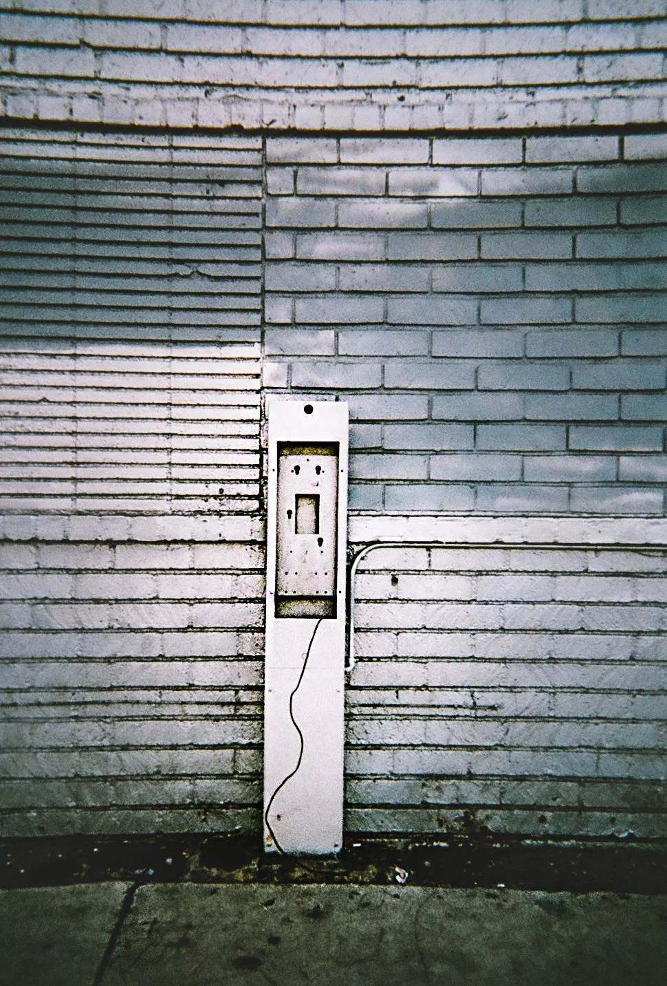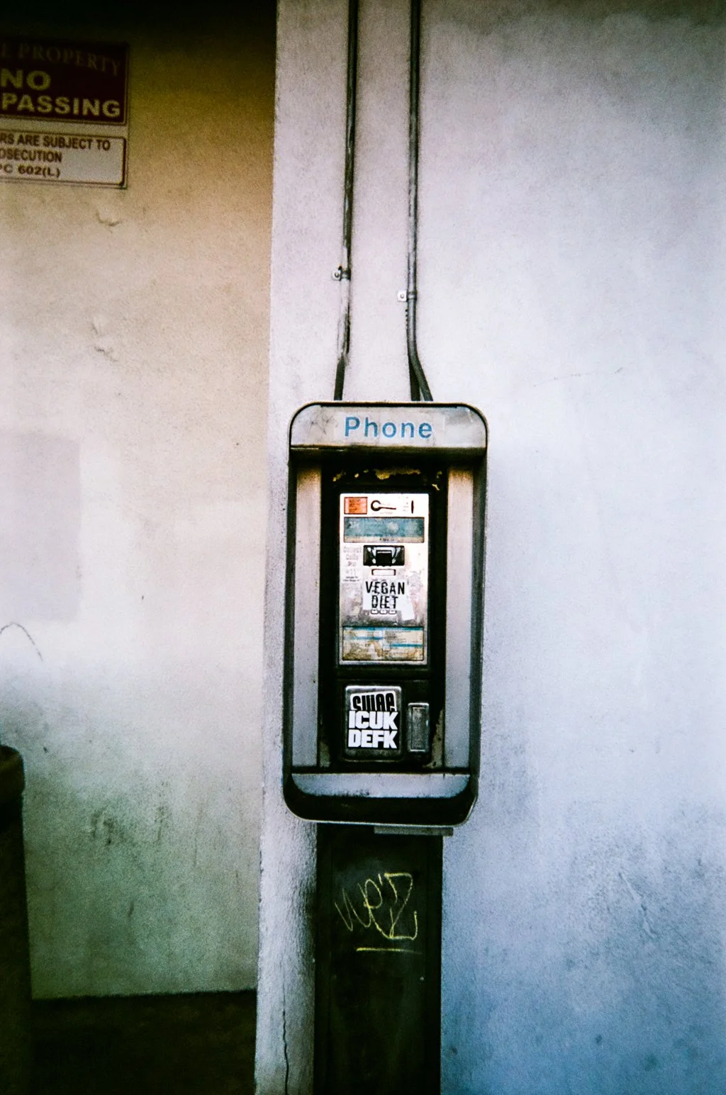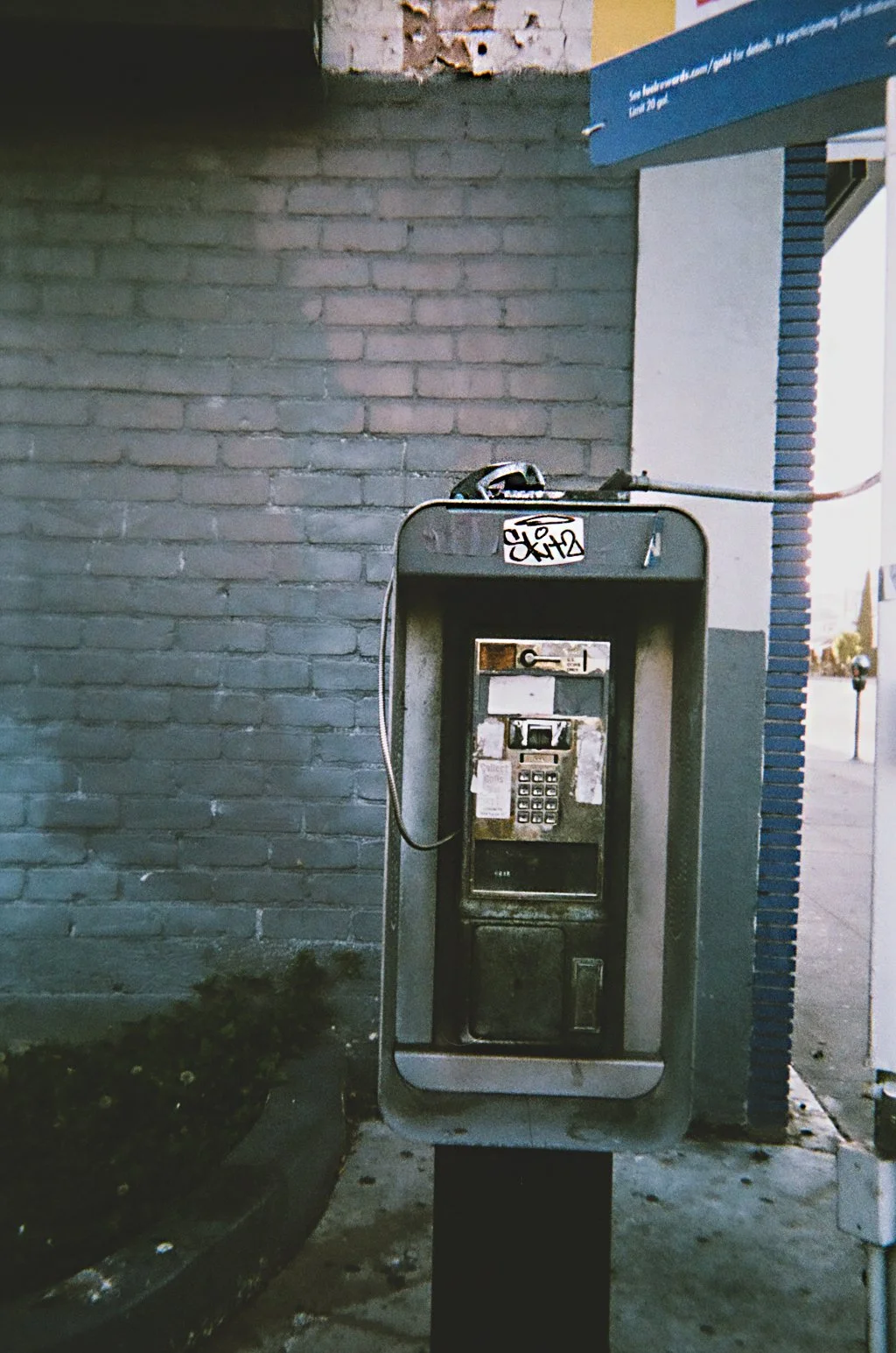 Mobile phones control our primary method of communication. And with the once needed payphone invention, which first appeared in 1898, gradually fading to memory, this series is a glimpse back in time to appreciate the payphone’s brilliance and usefulness in their most recent last looks. Many of these phones are decayed and withering from neglect. The once coin-operated “pre-pay” mode of communication is a genius found in common necessity and will soon be forgotten to time, as miscreants continuously abuse them. Eventually the decaying phones of Los Angeles will disappear entirely, as they are the subject of this on-going study. Each photograph is an environmental portrait. And even though the phones are out of commission, they remain — a presence and absence at the same time.